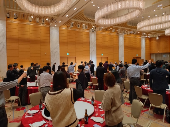 今年の忘年会を締めくくるのは、2026年から社員会の新会長となりますTさんです。(拍手)