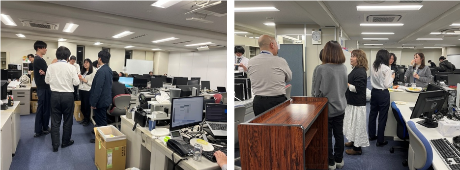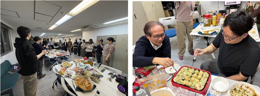 大阪本社は、寿司やピザを囲んだ立食パーティーで交流